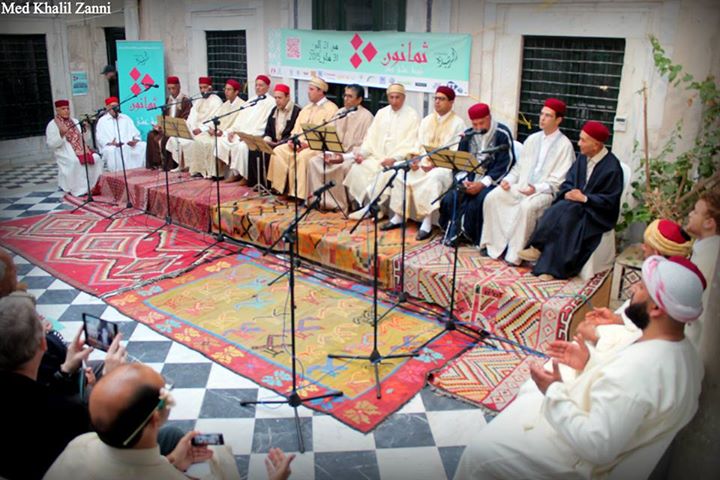Le Samedi 30 Mai 2015 à la médina de Tunis, en présence d’un public nombreux venu pour fêter les 80 ans de la Rachidia, pour la première fois la troupe musicale boussaidienne Al-Manga, composée d’une vingtaine de choristes spécialisés dans l’interprétation du mjarrad (le mot tire son origine de l’arabe et signifie littéralement « dépouillée » des instruments de musique), a proposé son récital. Sous la conduite de Mohamed Farouk Chlagou, la troupe Al-Manga, nom qui signifie « al dokkana », ces fameux bancs en dur qui se trouvent habituellement dans les bains et les cafés maures, dans des commerces traditionnels et surtout dans les « zawiyas » (mausolées), a fait voyager toute l’assistance dans un monde de recueillement et mysticisme. Les litanies pleines de prières, d’invocations et de supplications de la « issawiyya » commencent par une section vocale qui est accompagnée uniquement par des battements de mains reproduisant ainsi un seul cycle rythmique à cinq temps qui, très lent au début, devient au fur et à mesure de plus en plus rapide, et même endiablés jusqu’aux transes. Une performance qui se veut une purification de l’âme, des sentiments et une aspiration à une sérénité supérieure, consacrant ainsi une tradition locale que les habitants de #Sidi_Bou_Saïd, avec beaucoup de passion et de dévotion, pérennisant ainsi le travail de cheik Amor Amrouch, cheikh Aly Hadad et cheikh Salah Aansari, tiennent à préserver. Et c’est plutôt réussi jusqu’ici.